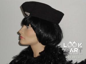 Like something different? Exciting black hat with diamante trim. In the style of flying hats it is worn perched on the head- usually on a slight angle.